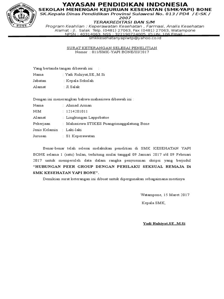 Contoh Surat Hasil Penelitian : Doc Surat Keterangan Penelitian Dari Sekolah Arif Rahman Zens Academia Edu / contoh penelitian tindakan kelas "ptk"